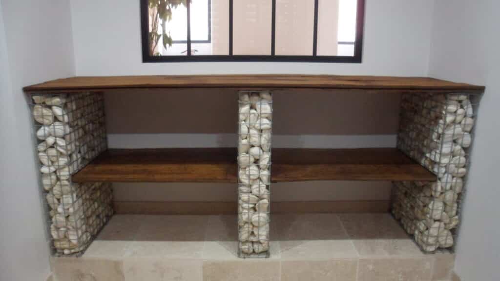 Elle peut être en pierre ou en bois (au choix du client) pour une option esthétique ou pratique (finition d’un banc en gabion par exemple)